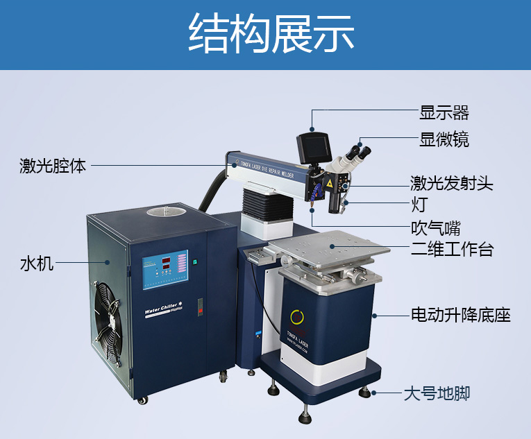 出口型模具激光焊機(jī)是通發(fā)激光公司專(zhuān)門(mén)為出口國(guó)外客戶(hù)使用而設(shè)計(jì)的系列機(jī)型TFL-200E,適用于各類(lèi)精密注塑模具、壓鑄模具等模具激光修補(bǔ)焊接;同時(shí)也適合鑄件沙孔激光修補(bǔ)、模具崩缺激光修復(fù)、過(guò)切加工等的激光修補(bǔ);各類(lèi)金屬結(jié)構(gòu)件、金銀首飾的激光焊接加工。